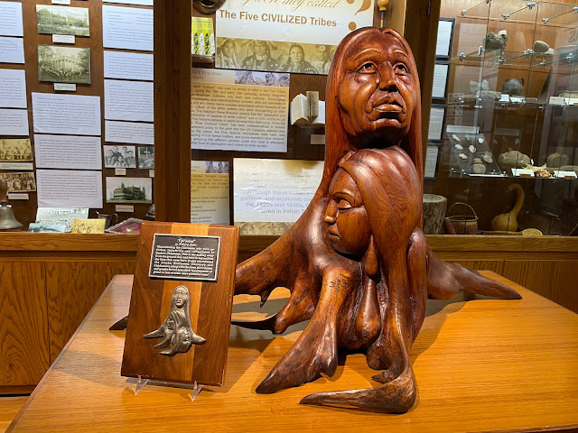 Next stop was to find out about another strange term, "Five Civilized Tribes". I know for damned sure that no Indigenous person gave their Nation or Tribe such a ridiculous name. Maybe some bought into it (as their was actually a museum with the name) after it was used, much in the same way that some folks went from being Colored to Negro to Black to African American. Self-determination it is not, more acculturation, assimilation, and who is controlling the collective consciousness of the cultural norm for different times, places, and spaces.